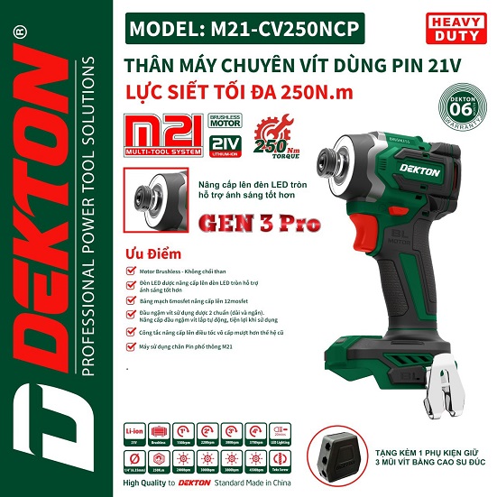 Máy chuyên vít dekton M21-CV250NCP ( Chưa pin và sạc)
