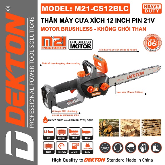 Máy cưa xích dùng pin 21V Dekton M21-cs12blc ( chưa có pin, sạc)