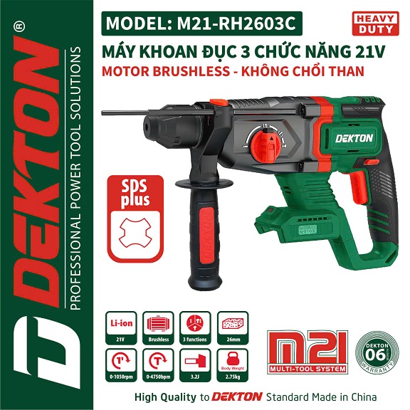 Máy Khoan đục 3 chức năng Dekton M21-RH2603C( chưa có pin và sạc)