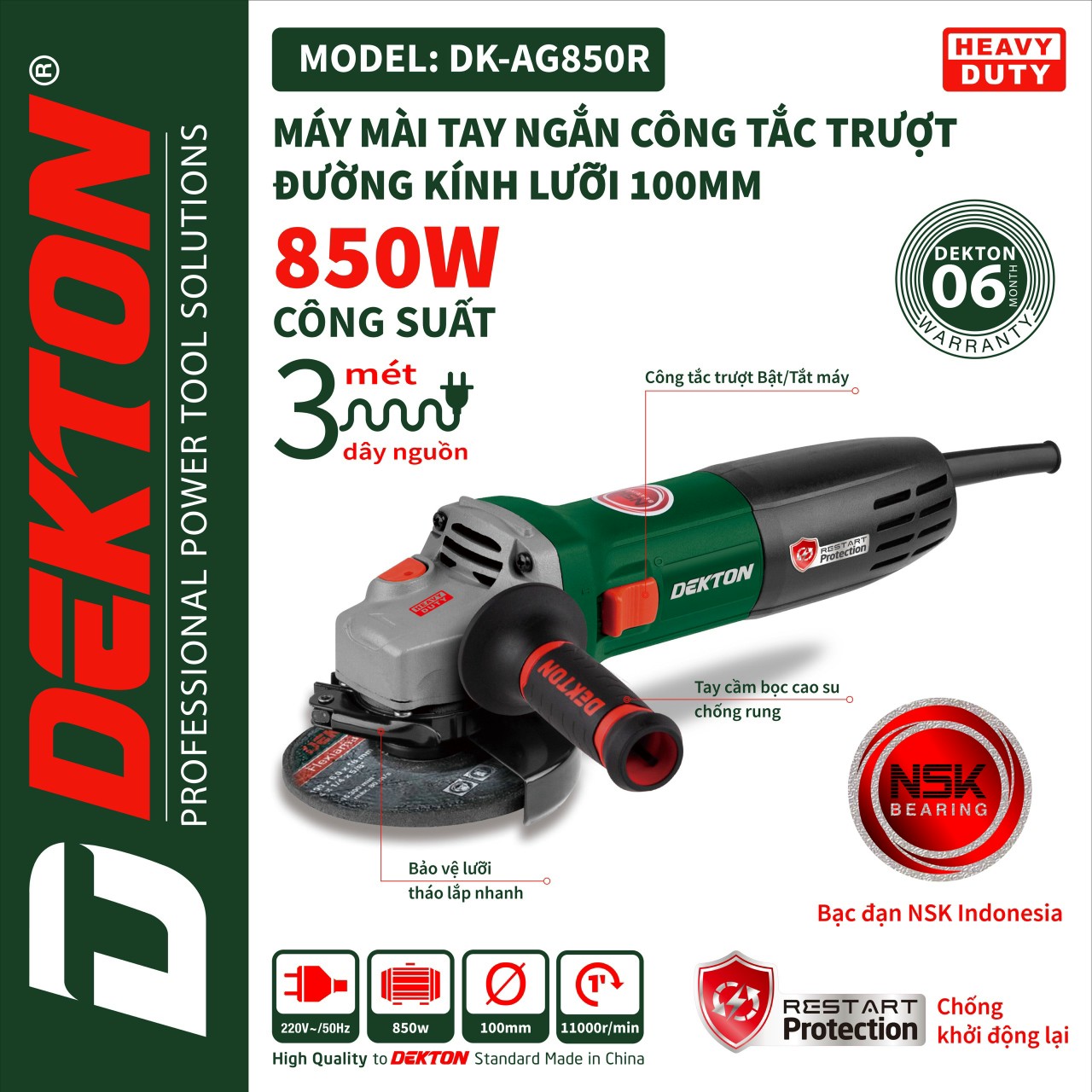 Máy Mài Góc Dekton DK-AG850R chống tự khởi động lại