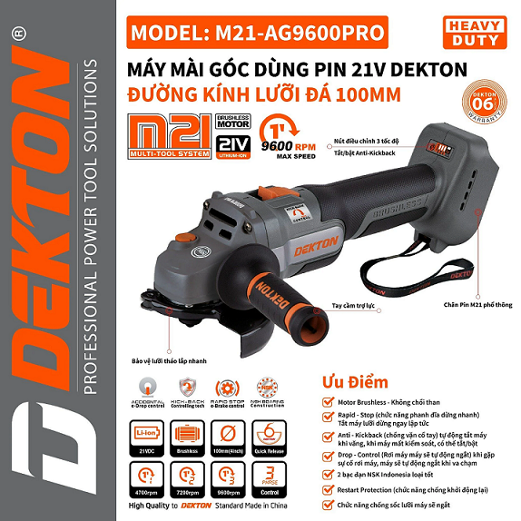 Máy mài pin Dekton M21-AG9600pro ( chưa có pin và sạc)