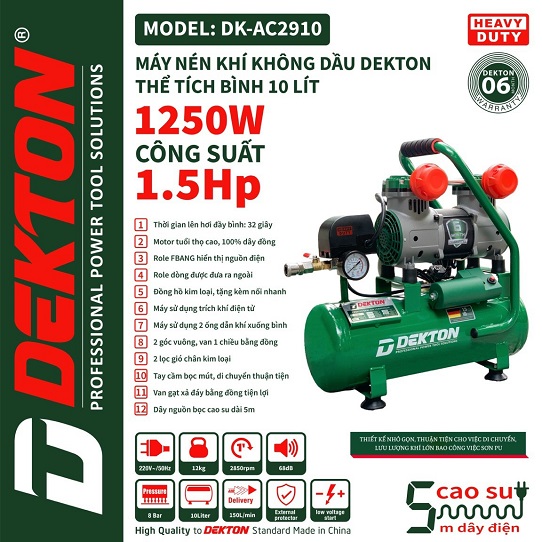 Máy nén khí Dekton DK-AC2910 (không dầu)
