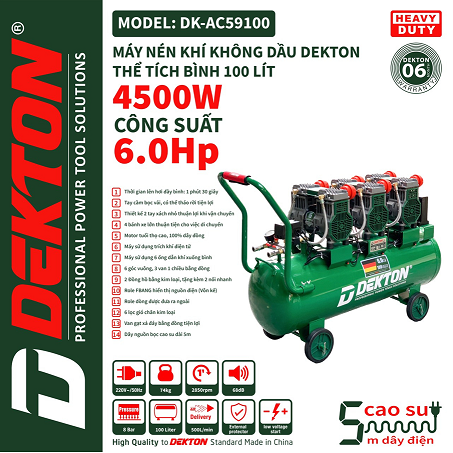 Máy nén khí không dầu dekton 100 lít DK-AC59100