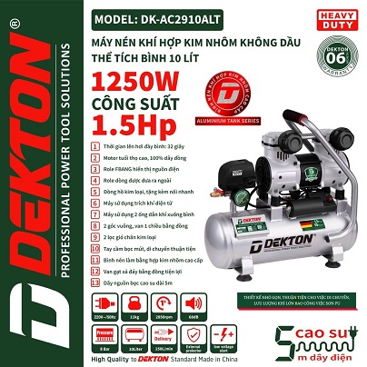 Máy nén khí hợp kim nhôm Dekton DK-2910ALT (không dầu)