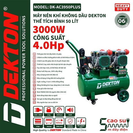 Máy nén khí không dầu Dekton 50 lít DK-AC3950 Plus