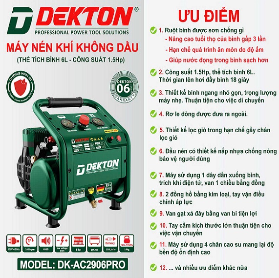 Máy Nén Khí Không Dầu Dekton DK-AC2906pro