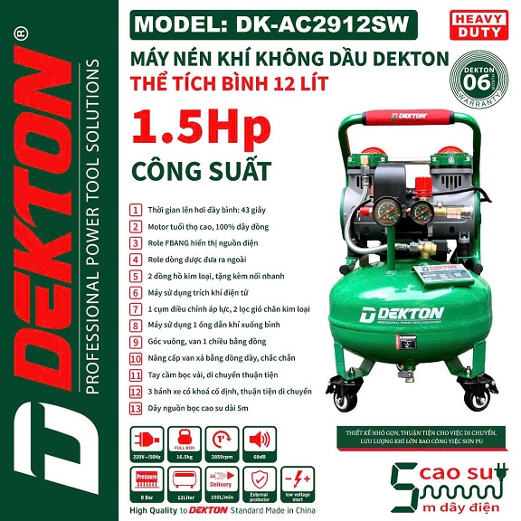 Máy Nén Khí Không Dầu Dekton DK-AC2912SW 12 lít