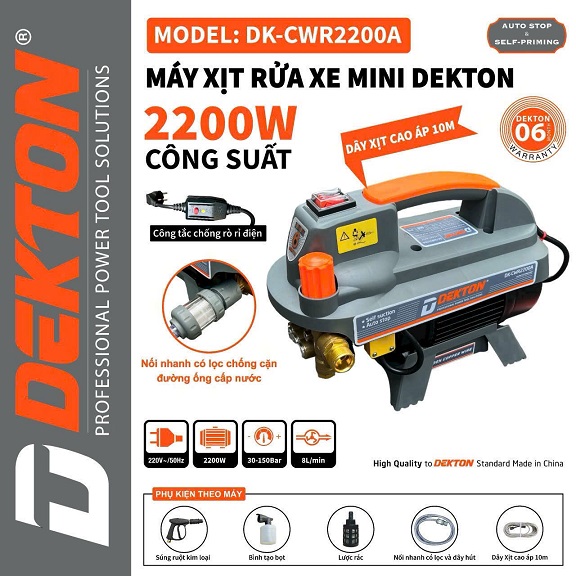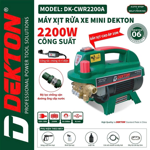 MÁY RỬA XE DEKTON 2200W – CÓ BỘ PHẬN CHỐNG GIẬT